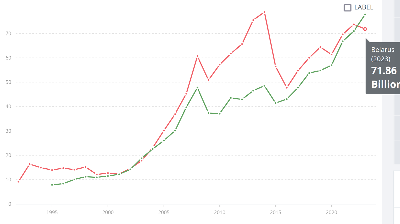 We also discovered an unexpected fact that Lithuania’s GDP surpassed (sic!) Belarus’s GDP in 2023 by 6 billion USD: This happened despite a threefold difference in population!