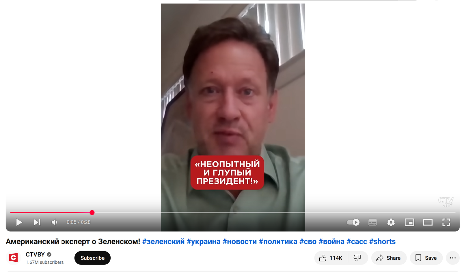 The video contains obvious manipulative techniques aimed at discrediting the Ukrainian president and creating a negative image of the West. High risk of spreading disinformation.