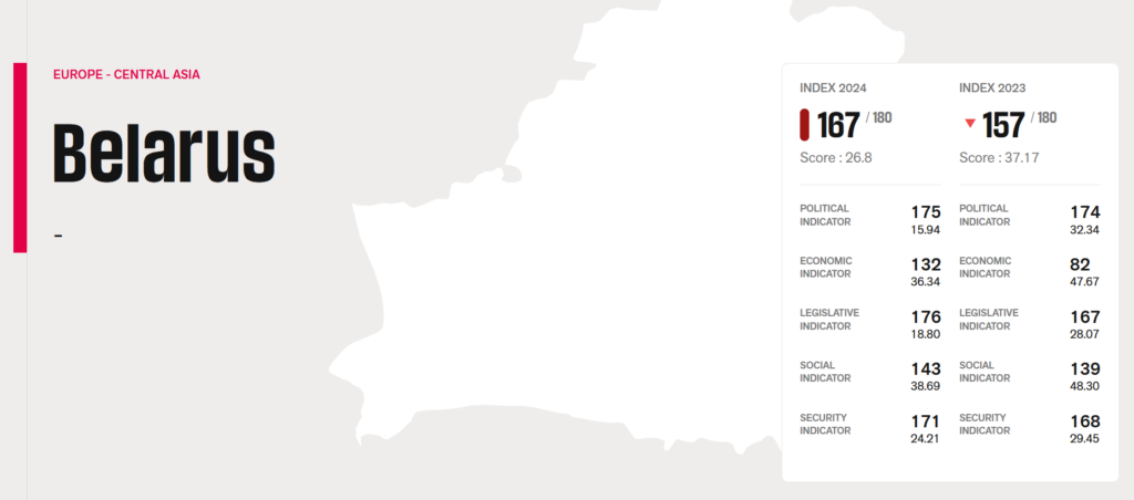 Беларусь ухудшила свою позицию с этом глобальном индексе на 10 позиций: