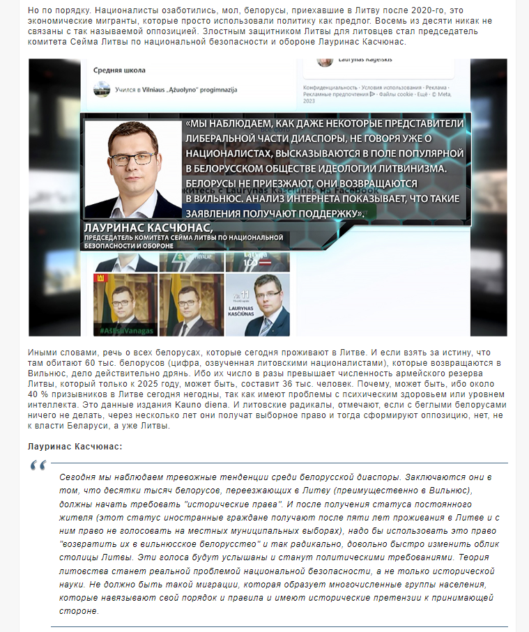 В целом, текст является примером дезинформации, направленной на дискредитацию литовского правительства и его поддержки беларусского гражданского общества, создание страха и недоверия к эмигрантам, и искажение роли гражданского общества в продвижении демократических изменений.