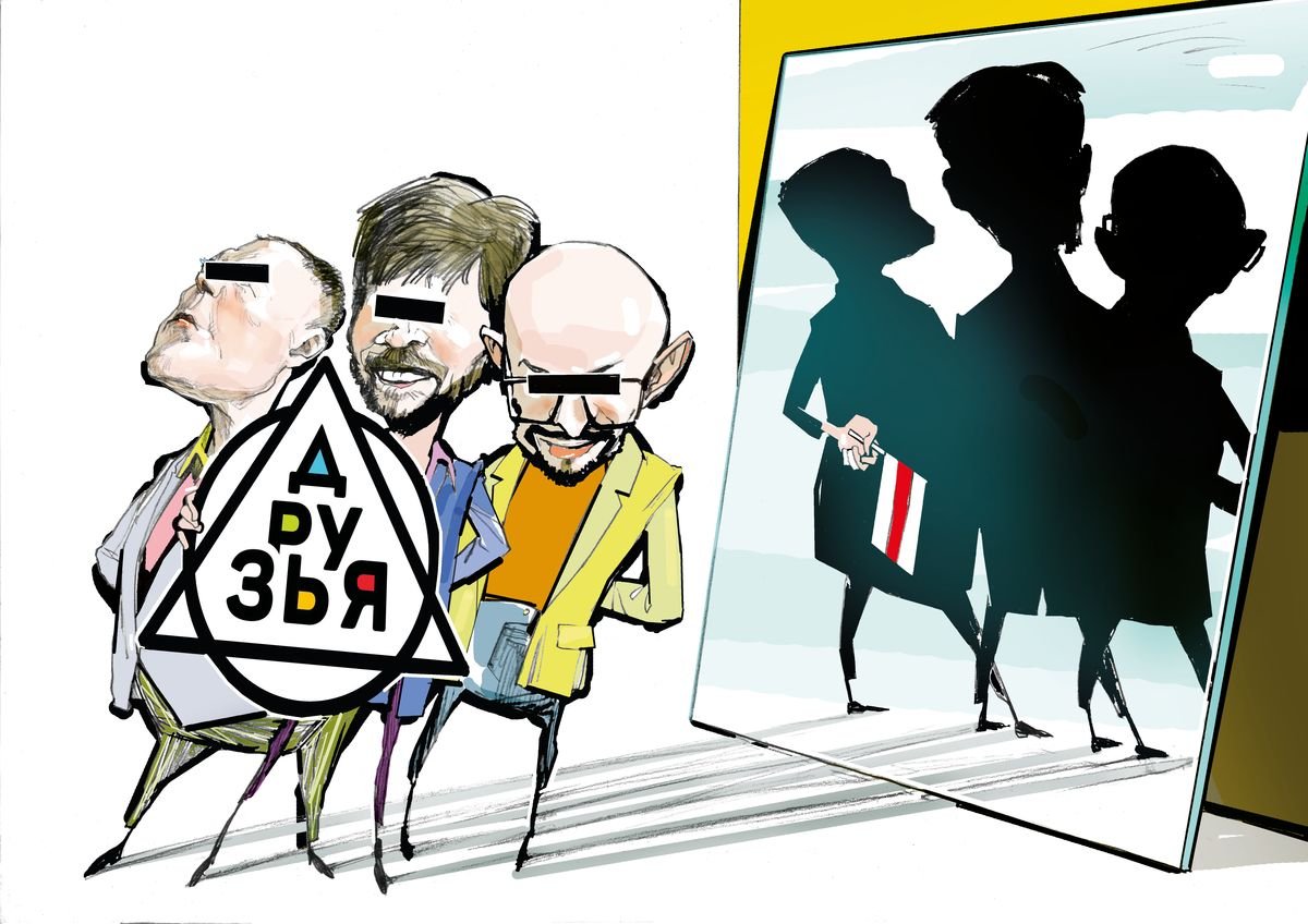 Традиционно публикации данного автора сопровождаются карикатурами, имитирующие стиль советских политизированных карикатуристов Кукрыниксов: