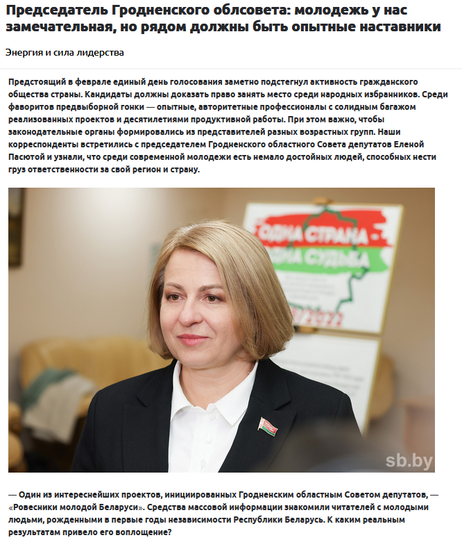 Председатель Совета Республики Наталья Кочанова на встрече с членами Молодежного совета (парламента) при Национальном собрании, молодежных советов (парламентов) при местных советах депутатов (Sic!) заявила: