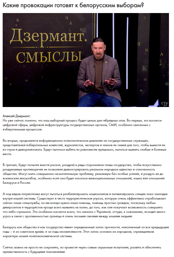 Политолог Алексей Дзермант рубрике «Смыслы» в программе Новости «24 часа» на телеканале СТВ рассказал об угрозах выборам*: