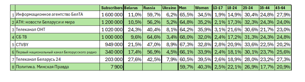 Большинство подписчиков у этих каналов из Российской Федерации.