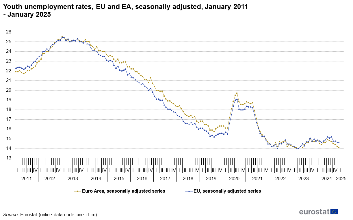 Аналогично, уровень молодежной безработицы также идет на спад, что доказывает стабильность рынка труда в ЕС и его способность адаптироваться к экономическим изменениям.