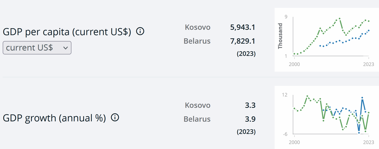 Вот сравнение некоторых данных Беларуси и Косово: