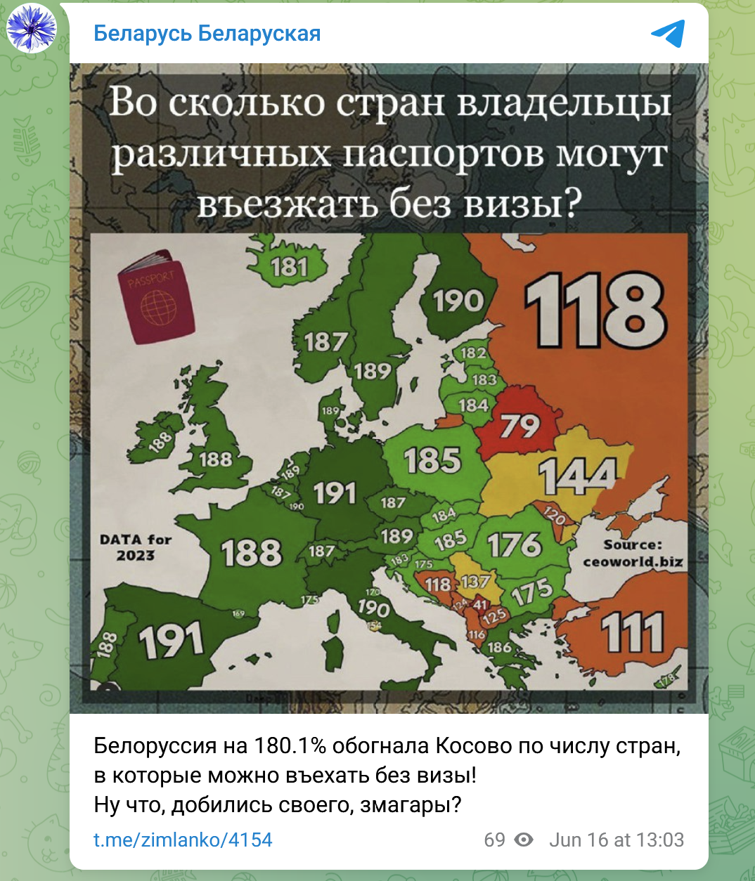Наверное, данный пост должен показывать насколько больше стран могут въехать обладатели беларуского паспорта, чем с паспортом Республики Косово
