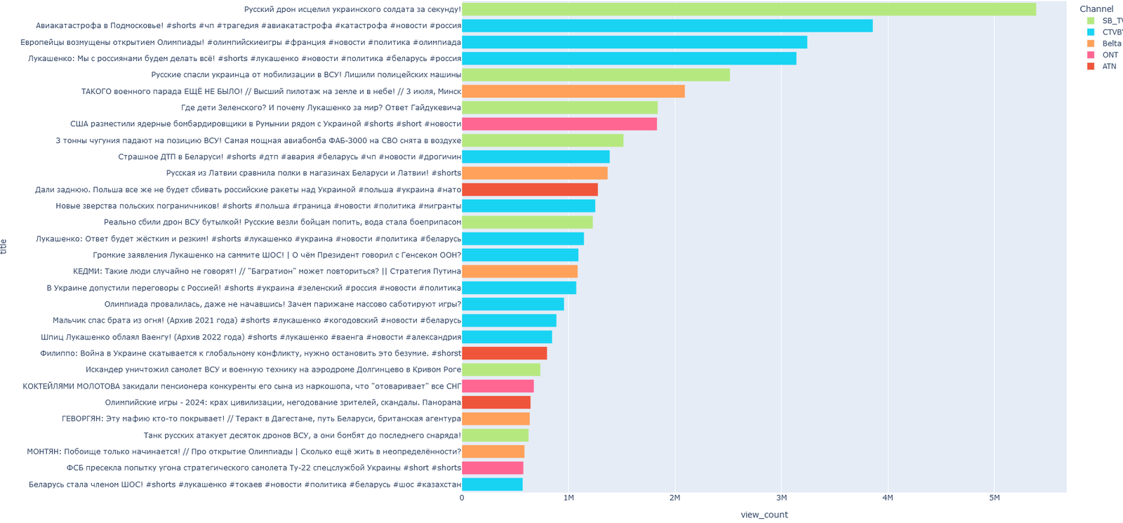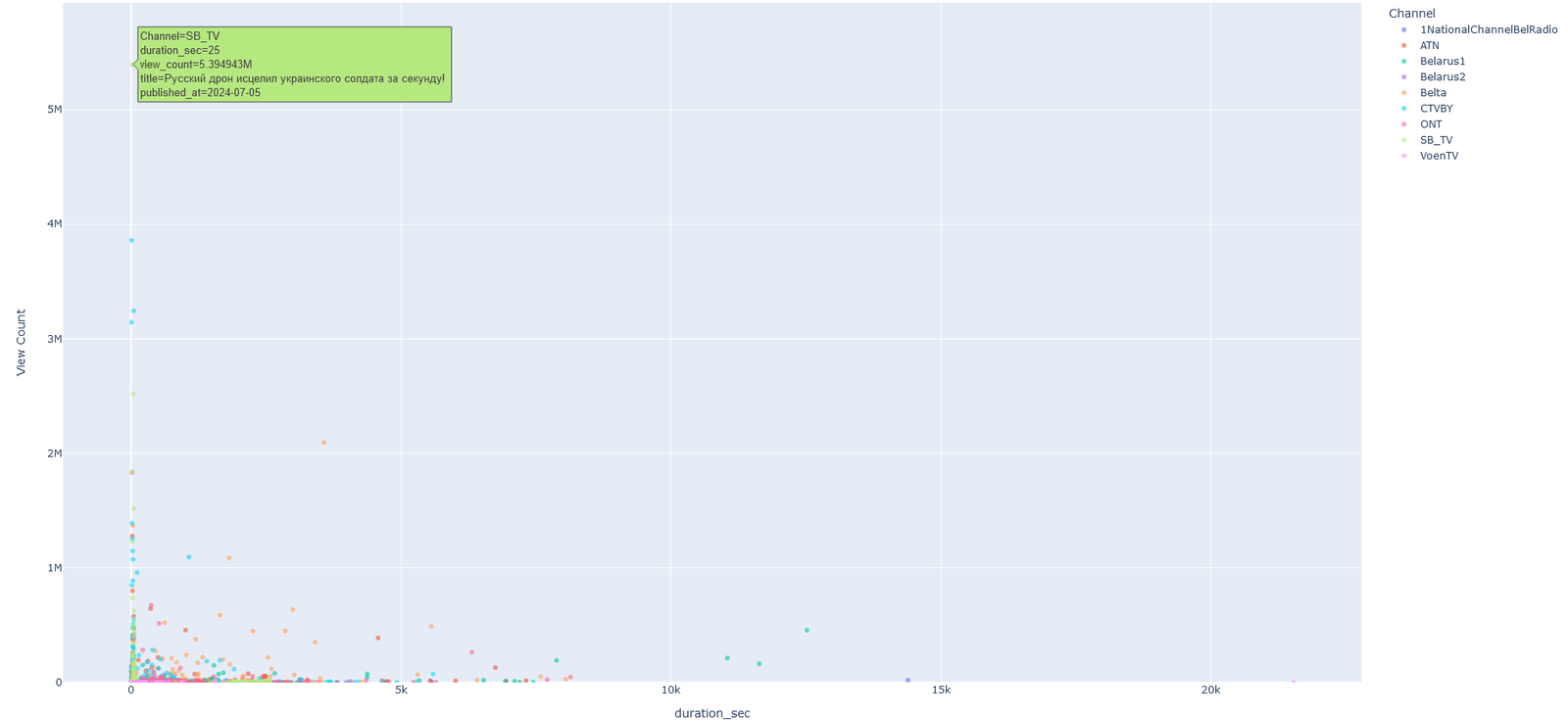 Ко всем предыдущим выводам можно добавить, что диапазон наиболее просматриваемых видео беларуской интернет-аудиторией находится в диапаазоне от 200 до 500 тысяч просмотров, за исключением происшествий и погодных катаклизмов. Видео c большим числом просмотров выглядят, как ориентированные на российскую аудиторию. В последние недели достаточно много публикаций по теме замедления YouTube в Российской Федерации, поэтому регулярный мониторинг беларуских YouTube-каналов приобретает еще большое значение, чтобы понимать насколько эти ограничительные меры скажутся на беларуской интернет-аудитории.