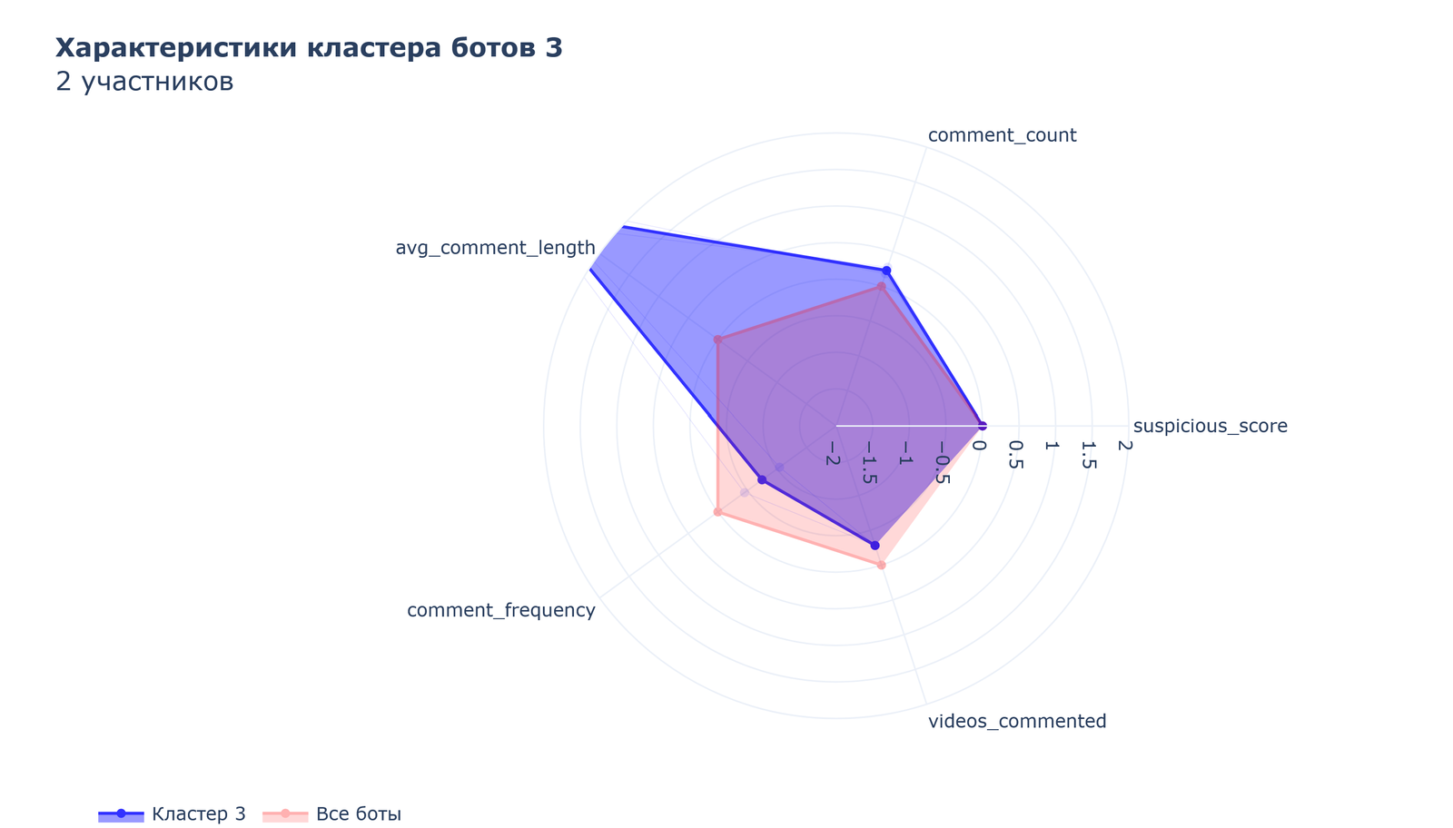 Эти боты выступают как «генераторы контента» с очень высокими показателями средней длины комментария и частоты комментирования.